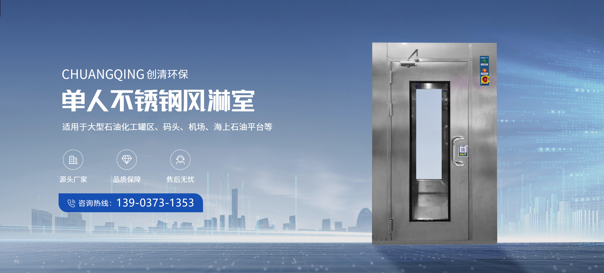 新鄉市創清環保有限公司地處107國道、京港澳高速,京廣鐵路,新荷鐵路,交通十分便利。 公司成立以來,被上級主管部門評為“重合同守信用”單位,在華北地區已得到廣大用戶的好評。近幾年產品遠銷全國各地。 主要生產:單人型號風淋室,雙人型號風淋室,多人型號風淋室,傳遞窗等。 公司以“質量求生存,信譽求發展”的經營管理理念,不斷創新發展,熱忱希望社會各界新老用戶一起共創偉業。